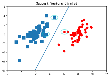 支持向量(support vector)就是离分割超平面最近的那些点。