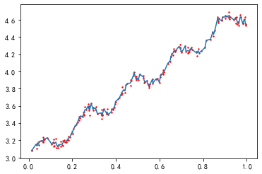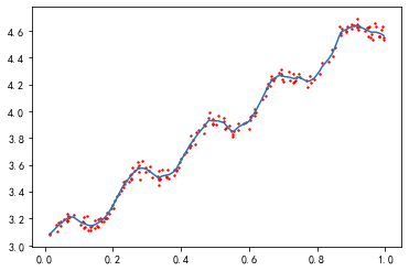 线性回归有可能出现欠拟合,因为求的具有最小均方误差的无偏估计。可以引入一些偏差,从而降低预测的均方误差。其中一个方法是局部加权线性回归(locally weighted linear regression, LWLR),在该算法中,我们给待预测点附近的每个点赋予一定的权重;然后在这个子集上基于最小均方差来进行普通的回归。与KNN一样,这种算法每次预测需要事先选取出对应的数据子集,该算法解出的回归系数w的形式如下