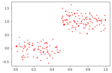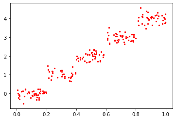 ax.scatter(data[:, 0].T.tolist()[0], data[:, 1].T.tolist()[0], 5, c='red')