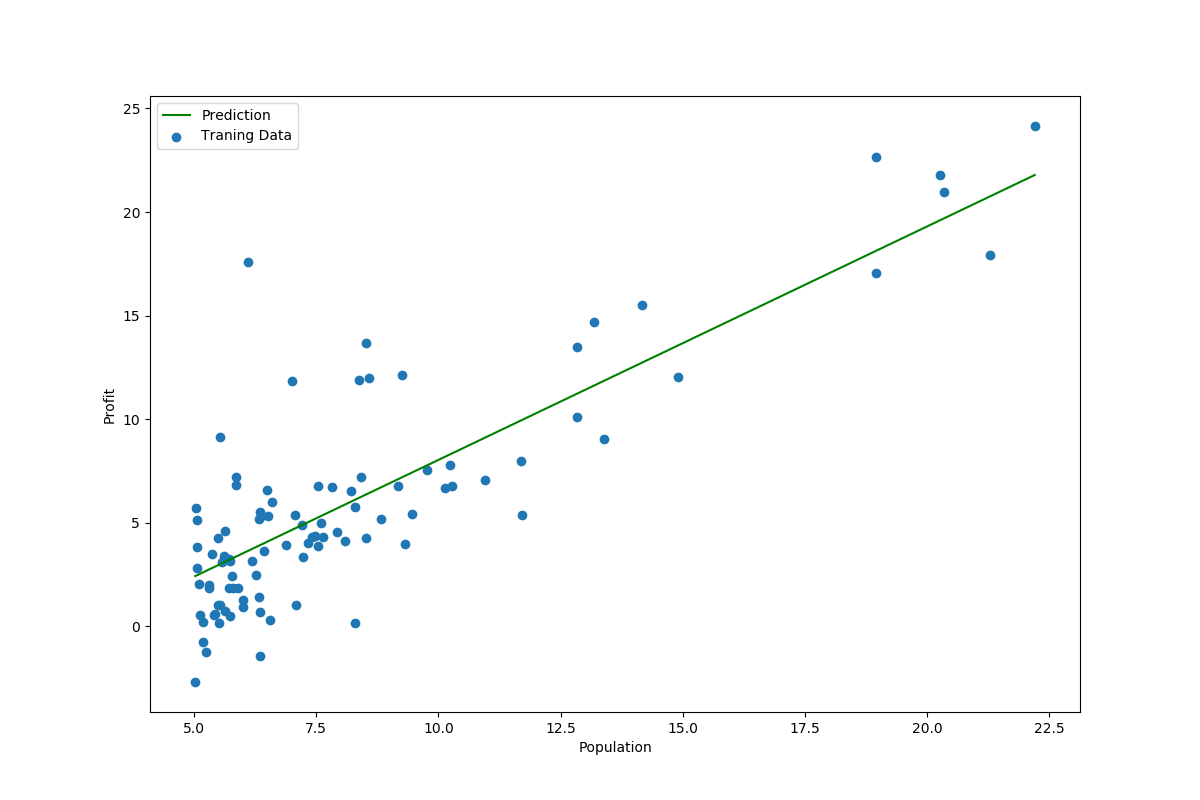 print(X.shape, Y.shape, theta.shape)  # (97, 2) (97, 1) (1, 2)