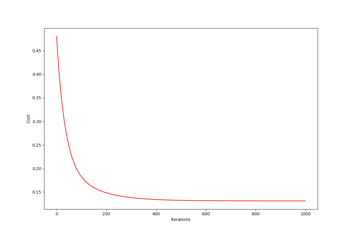g2, cost2 = gradient_descent(X2, Y2, theta2, alpha, iters)
