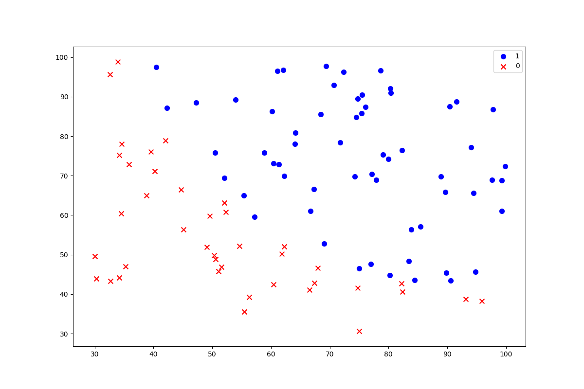 练习数据ex2data1.txt和ex2data2.txt都是由三列数字组成的文本文件,前两列是特征,第三列是结果,结果只有0和1两种。