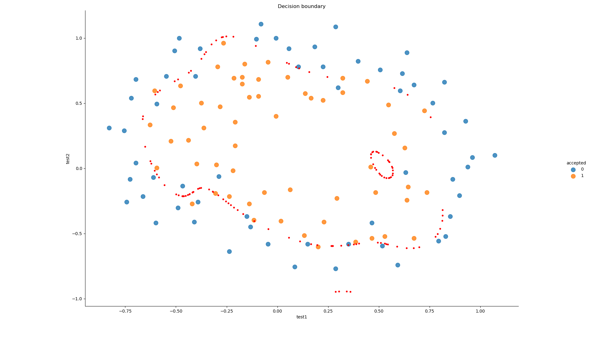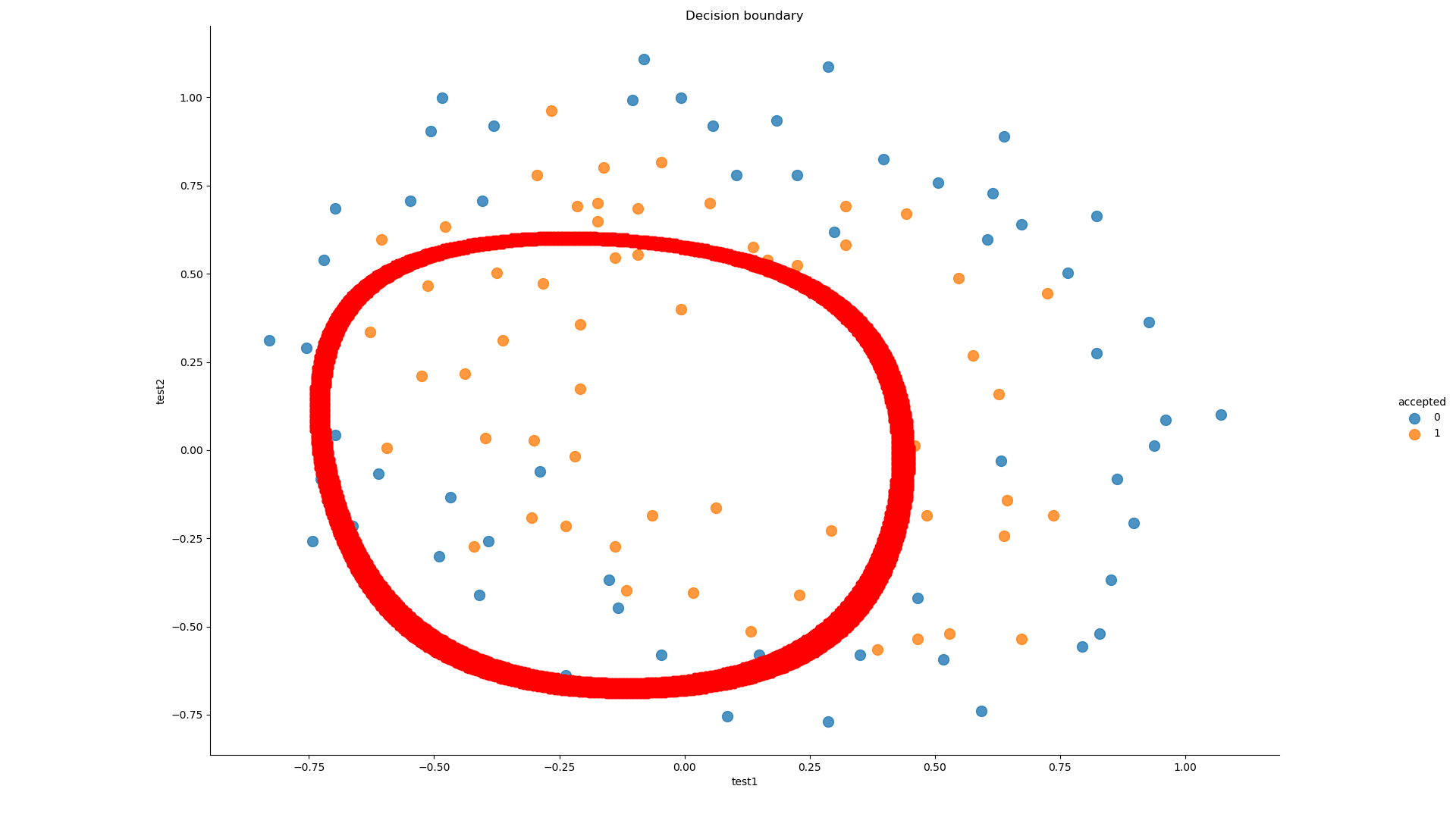 draw_boundary(power=6, l=100) # lambda=1 欠拟合