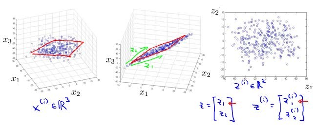 在以前的视频中,我谈论PCA作为压缩算法。在那里你可能需要把1000维的数据压缩100维特征,或具有三维数据压缩到一二维表示。所以,如果这是一个压缩算法,应该能回到这个压缩表示,回到你原有的高维数据的一种近似。