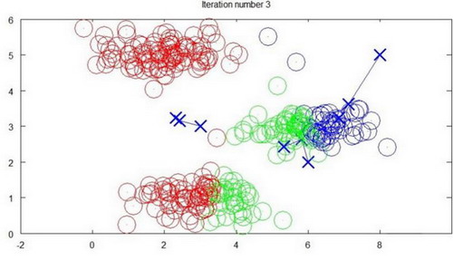 计算每一个组的平均值,将该组所关联的中心点移动到平均值的位置。