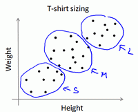 例如,我们的 T-恤制造例子中,我们要将用户按照身材聚类,我们可以分成3个尺寸: