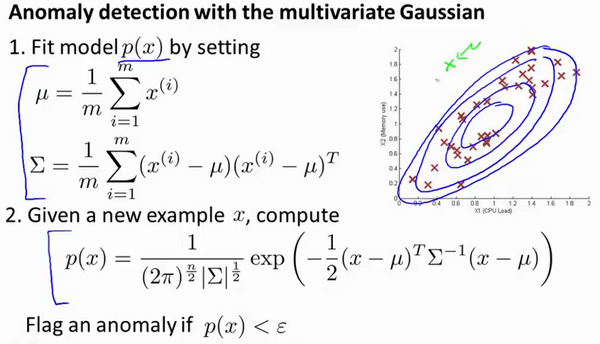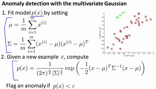 参考视频: 15 - 8 - Anomaly Detection using the Multivariate Gaussian Distribution (Optional) (14 min).mkv