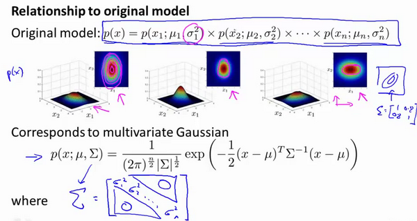 原始模型与多元高斯模型的关系如图: