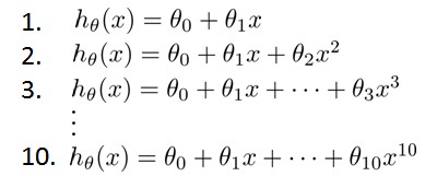 ​ 假设我们要在10个不同次数的二项式模型之间进行选择: