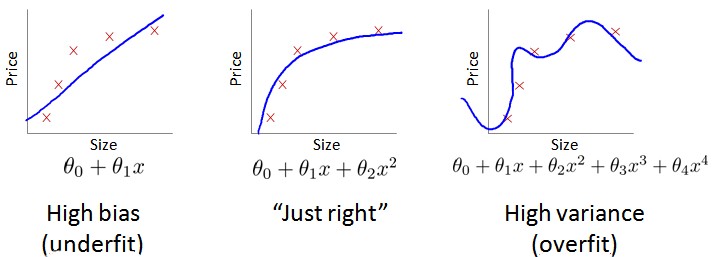 ​ 另一种考虑这个问题的角度是为了有一个高性能的学习算法,我们希望它不要有高的偏差和方差。