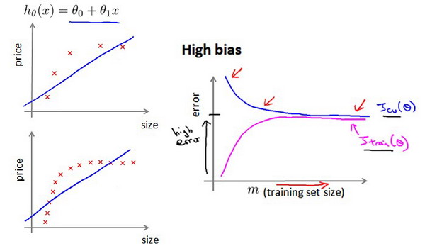 ​ 训练集误差和交叉验证集误差近似时:偏差/欠拟合