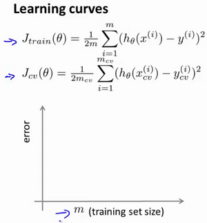 Cross Validation error: Jcv(θ)=12mcvi=1m(hθ(xcv(i))ycv(i))2